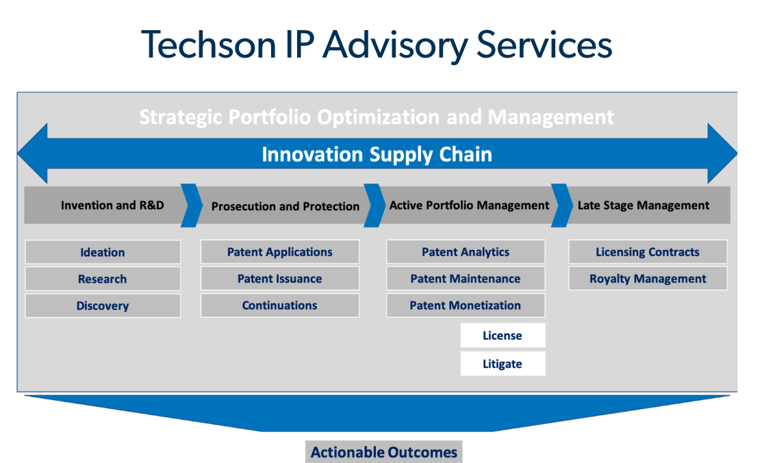 We have the team and the expertise to help your clients maximize their IP ROI across the Innovation Supply Chain. This approach is unique in that we embrace outside counsel (not compete) to insure clients receives the best market insights AND legal insights (while maintaining privilege).